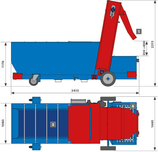 Toprak Elevatörü: Çift zincirli; IM2800 (800 mm) | IM1800 (500 mm) genişlik.